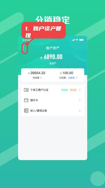 进入账户资产页面后,可查看当前待结算和已结算的资金情况。点击页面左上角返回按钮,返回上一层菜单。