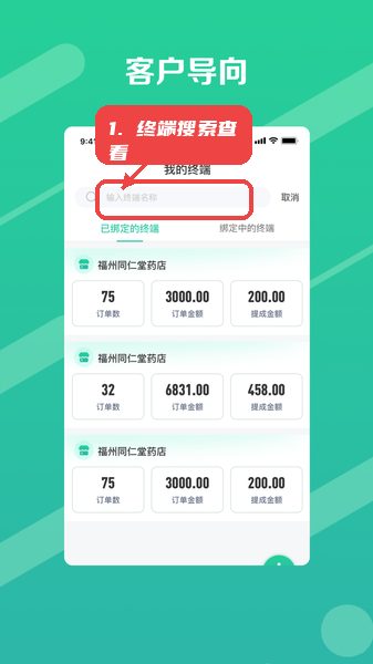 通过搜索框输入终端名称,快速查找并管理已绑定的终端,便于监督分销网络和分支业务情况。