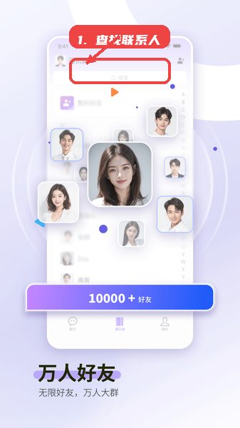 打开应用后,在顶部的通讯录搜索框中输入好友姓名,快速定位并选择需要沟通的联系人,适合管理大量成员的场景。