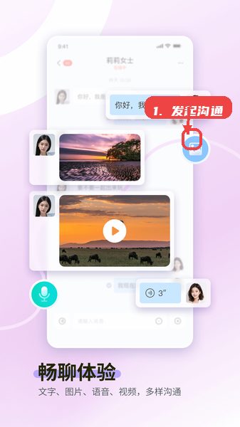 支持发送文字、图片、语音和视频,多种交流形式满足不同场景的沟通需求,增强团队互动效果。