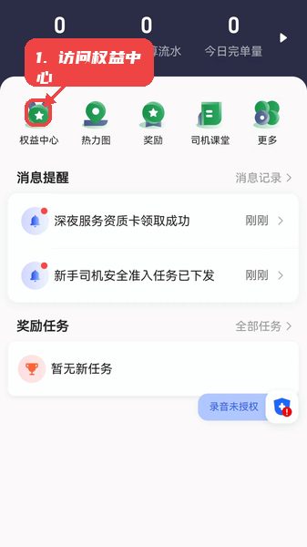 权益中心汇总司机可享受的奖励和福利,消息提醒则提供任务和资质等重要信息的通知。